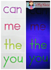 Glow in the dark sight words flouro paint q-tip activity Leave a Comment / By Lavinia Pop / 01/03/2016