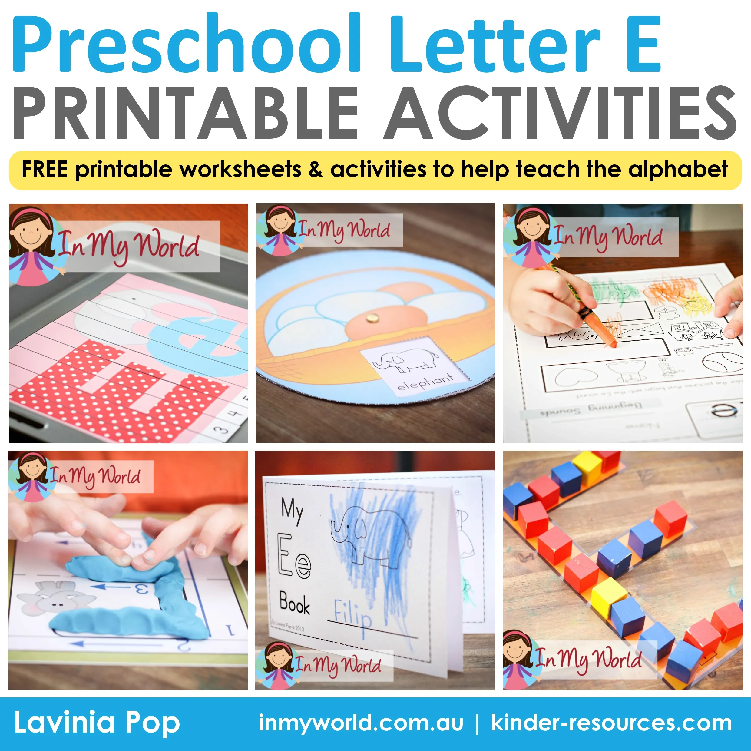 Preschool Letter E Printable Activities using alphabet mazes, letter tracing, mini books, and fine motor letter building
